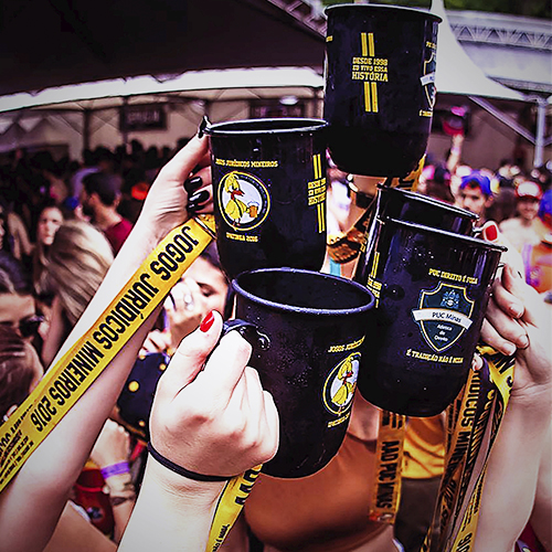 Fita para produção de cordão para crachá, cordão para medalha, cordão para chaveiro, cordão para tirante de copos e canecas de atléticas.